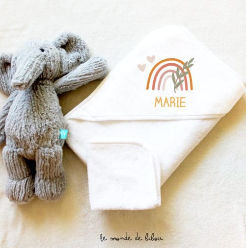 Notre Cape de bain Arc en ciel vous plaît ? Retrouvez tous nos cadeaux de naissance personnalisés sur notre boutique.