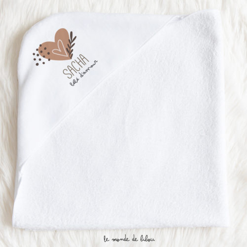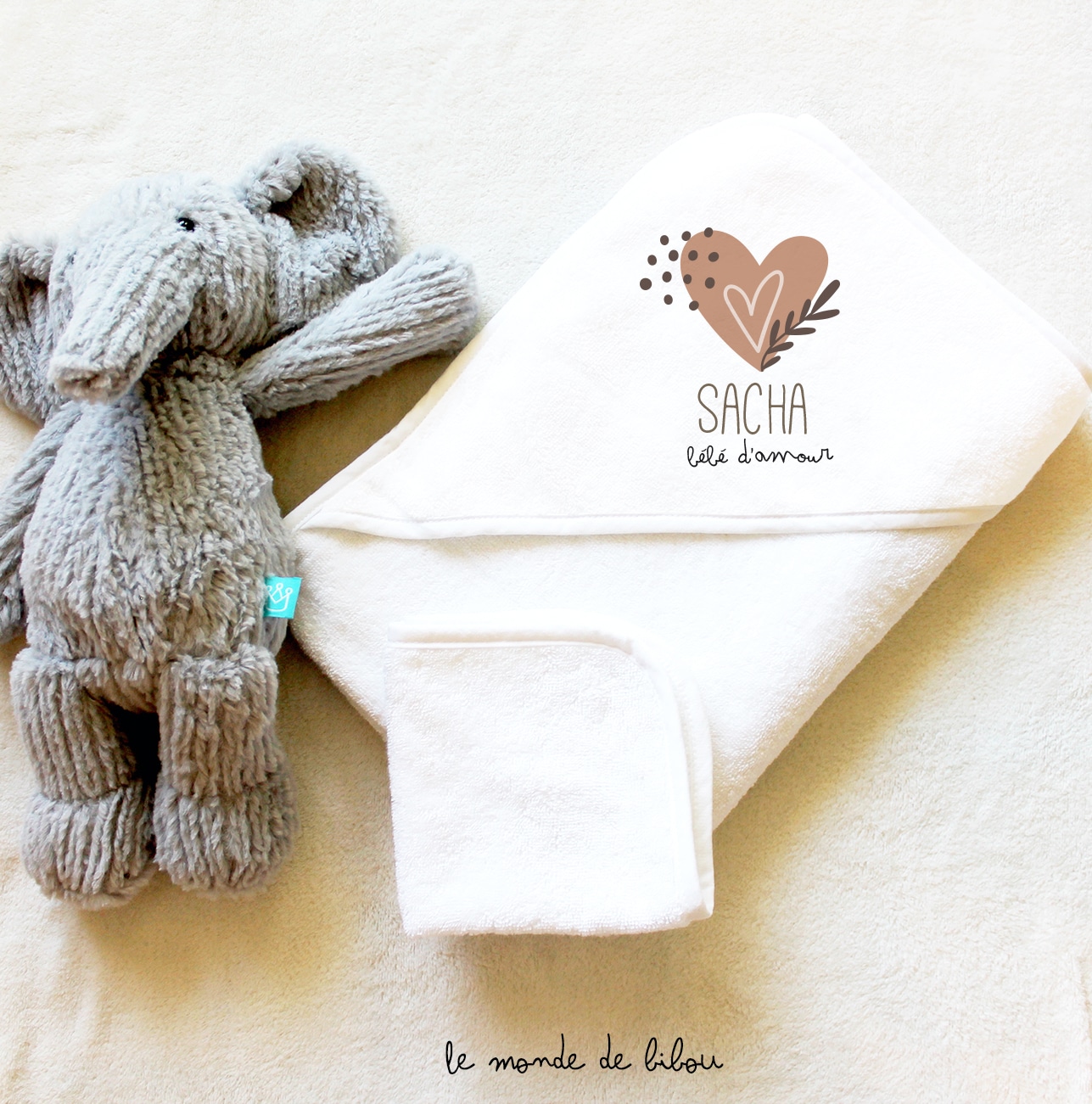 Notre Cape de bain Petit cœur vous plaît ? Retrouvez tous nos cadeaux de naissance personnalisés sur notre boutique.