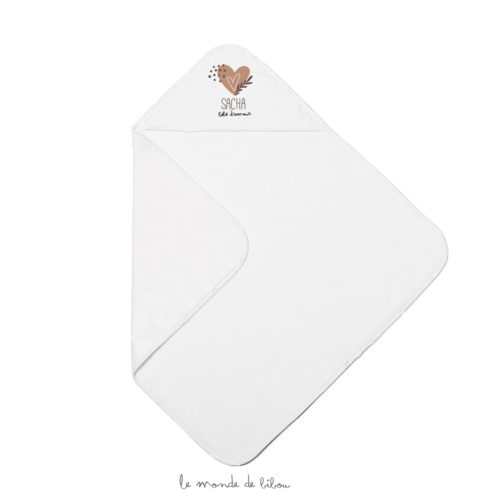Notre Cape de bain Petit cœur est une adorable sortie de bain en éponge pour bébé ou jeune enfant avec capuche personnalisée. Une belle idée de cadeau de naissance ! Offrez du bien-être et du confort après le bain avec notre jolie cape de bain personnalisable. Vous craquerez pour sa douceur et pour son design original.