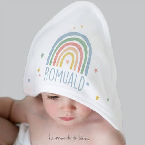 Notre Cape de bain Rainbow couleurs vous plaît ? Retrouvez tous nos cadeaux de naissance personnalisés sur notre boutique.