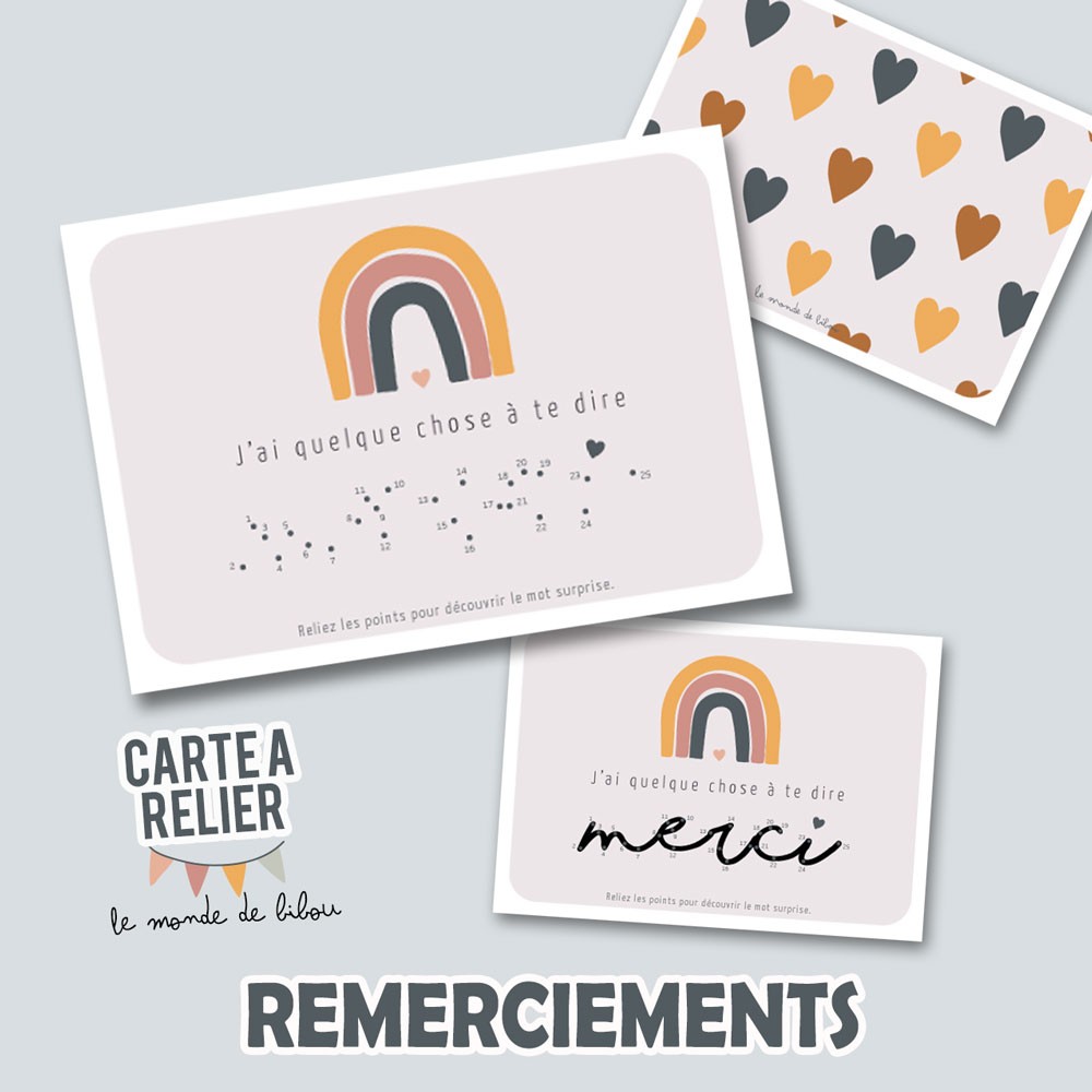 Notre carte jeu des points à relier comme cadeau de remerciement est une attention ludique dont on se souviendra. Il suffira de relier les points pour découvrir le mot surprise.