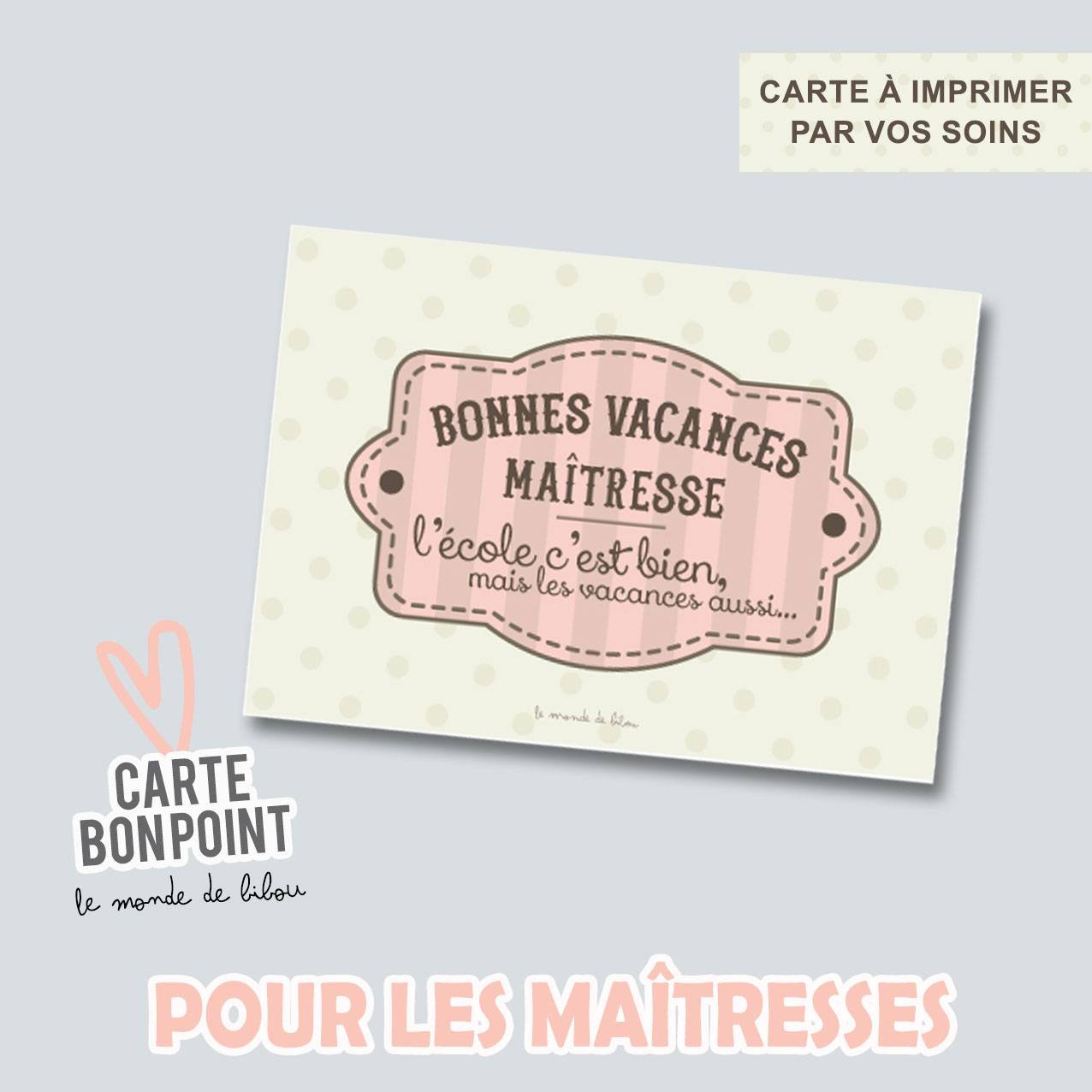 La Carte Bon retro Maîtresse à télécharger est une belle attention pour remercier toutes les personnes qui se sont occupées de votre enfant. Un joli cadeau pour une Nounou, une Maîtresse, une Atsem, une AVS ou une Éducatrice, etc… L’occasion de leur dire merci pour toute l’attention qu’elles lui ont porté tout au long de l’année scolaire, mais aussi pour toutes ces choses qu’elles lui ont appris.