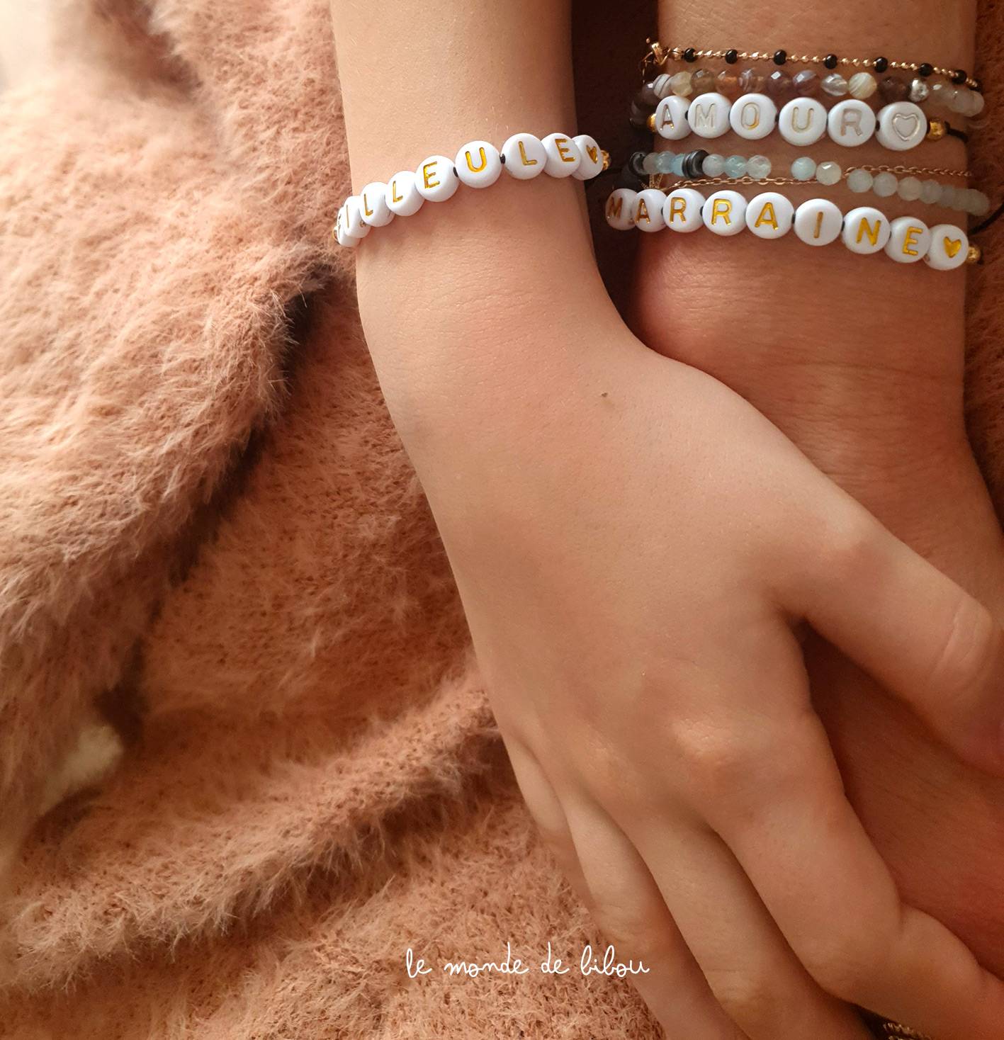 • Petites perles en acier inoxydable argent ou doré (Taille des perles acier : 4 mm/Taille des perles lettres : 7 mm)