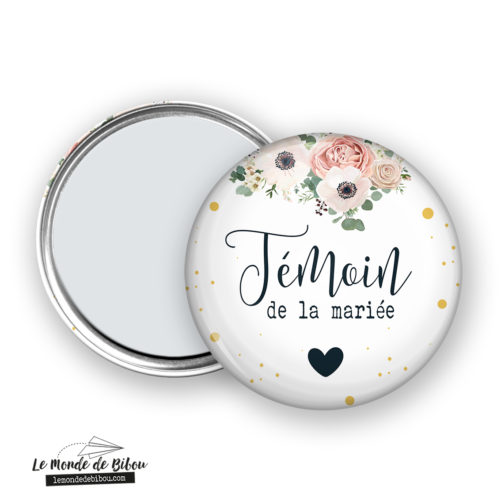 - Un miroir de poche « Témoin de la mariée » – dim : 5.8 cm
