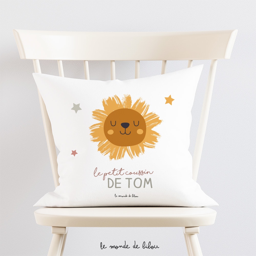 Notre joli Coussin personnalisé Lion accompagnera votre enfant pour la maternelle ou pour la crèche. Il sera aussi un objet décoratif pour la chambre de votre petit. Le coussin est personnalisé à son prénom.