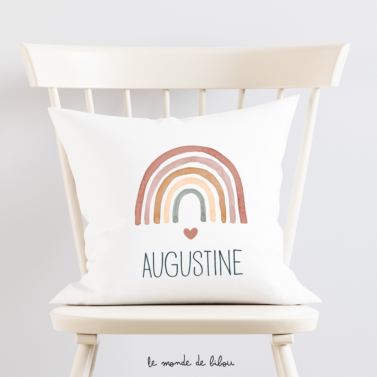 Notre Coussin personnalisable Rainbow vous plaît ? Retrouvez tous nos coussins décoratifs dans la boutique. Découvrez également toute la collection Rainbow ici avec des produits tels que pochette, affiche, tote bag, sac de rangement, et le Coussin de naissance Rainbow garçon…