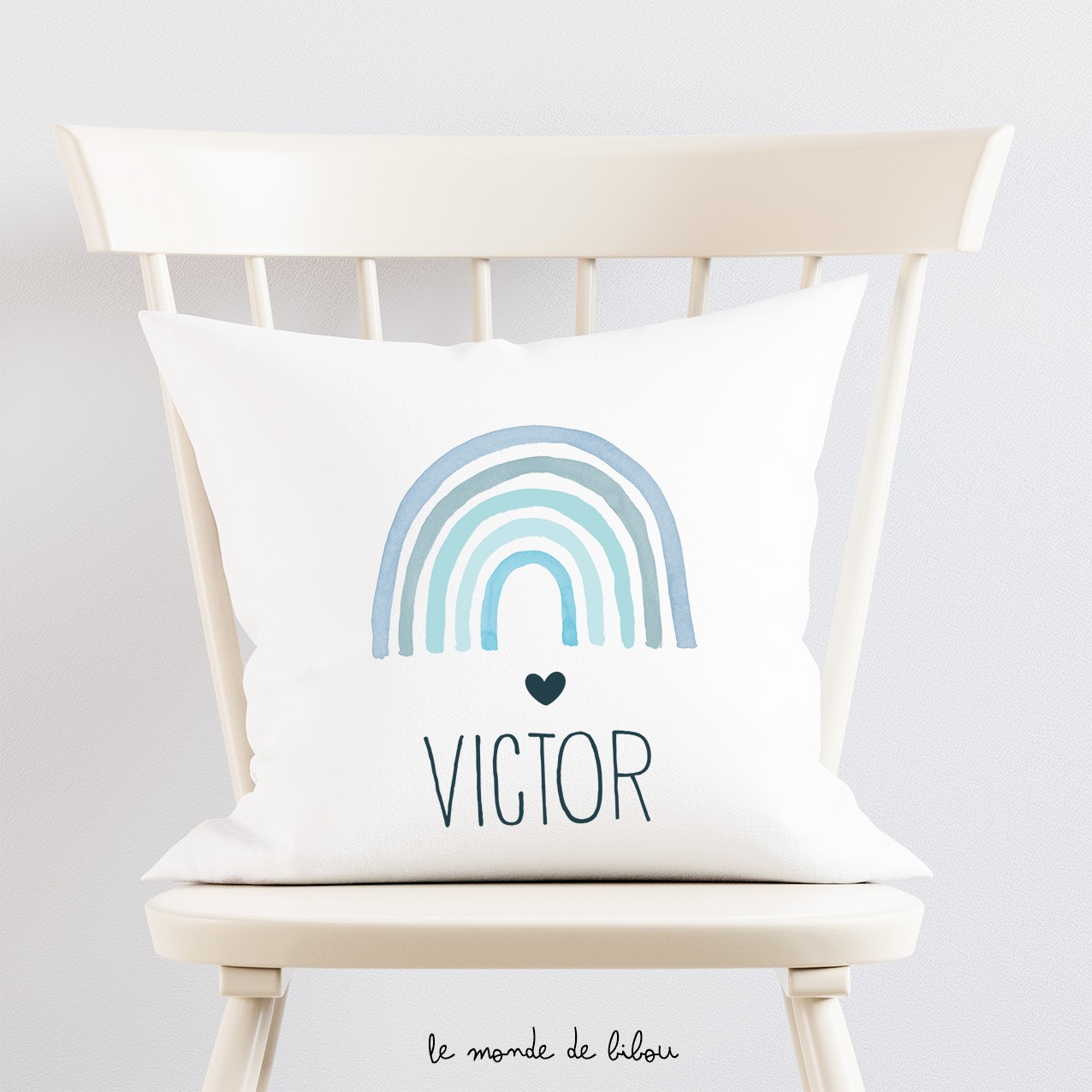 Grâce à notre Coussin prénom Rainbow garçon vous pouvez être sûr de faire plaisir avec sa jolie illustration Arc-en-ciel réalisée avec un effet aquarelle. Un style tendre et simple qui trouvera sa place dans la chambre de votre enfant. Un joli cadeau à offrir à l’occasion d’une naissance, d’un anniversaire ou sans occasion particulière, juste pour faire plaisir…