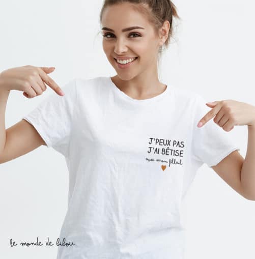 Pour accompagner le body, le tee-shirt bébé ou le tee-shirt enfant nous vous proposons ce t-shirt adulte pour une Marraine d’amour.