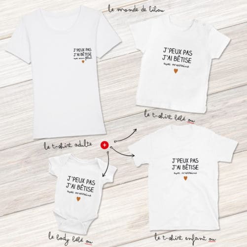 Notre Duo Bêtise avec Marraine et Filleul vous plaît ? Découvrez les versions solo (body, tee-shirt enfant et tee-shirt adulte) qui composent ce duo. Vous retrouverez également tous les cadeaux personnalisés de la collection Bêtise.