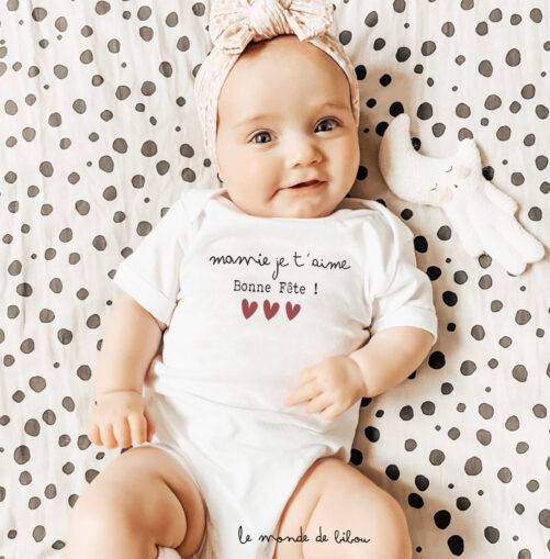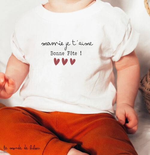 Notre Duo Bonne fête Mamie d’amour vous plaît ? Découvrez les versions solo (body, tee-shirt enfant et tee-shirt adulte) qui composent ce duo. Vous retrouverez également tous les cadeaux personnalisés pour les papys et les mamies dans la boutique.