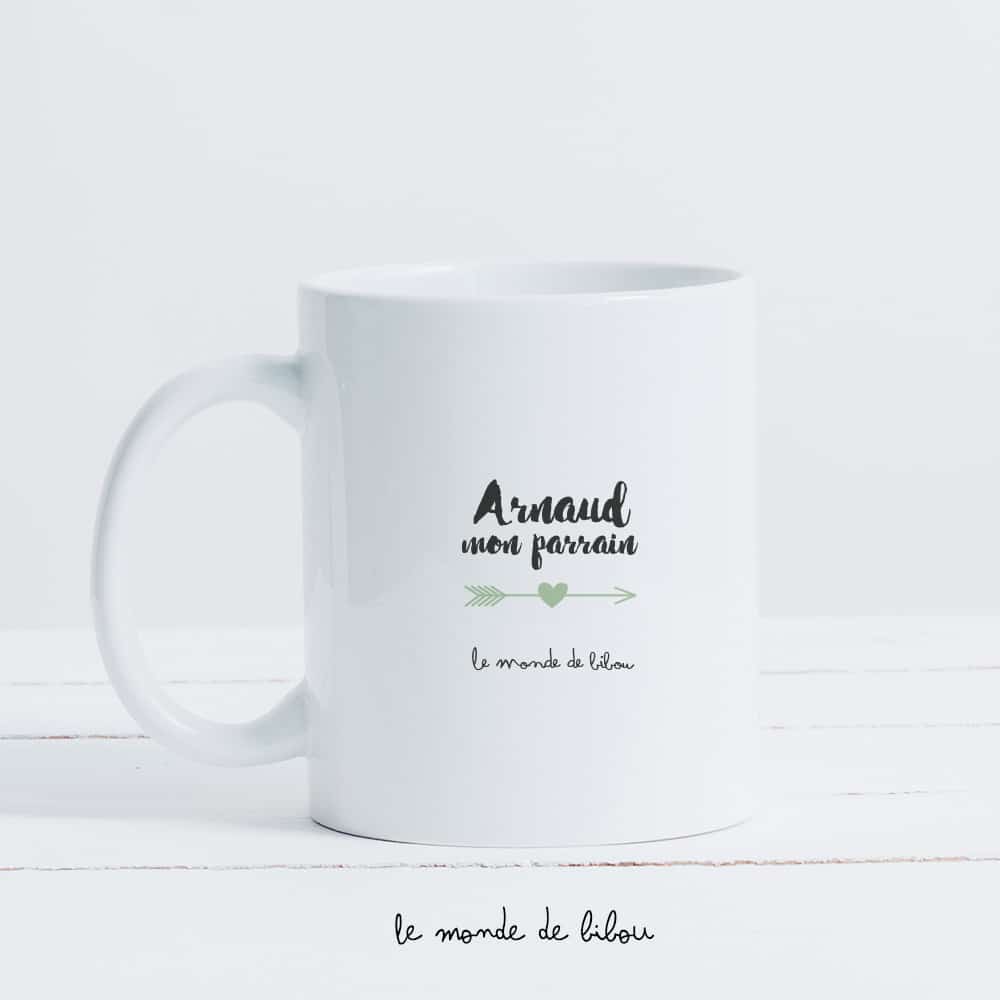 Offrez les 2 Tasses Parrain Marraine pour votre évènement. Ce lot de 2 mugs est une belle idée de cadeaux pour remercier le parrain et la marraine de votre enfant et leur dire combien on tient à eux. Les tasses sont personnalisables au prénom du filleul ou de la filleule, et à la nature et date de votre évènement.