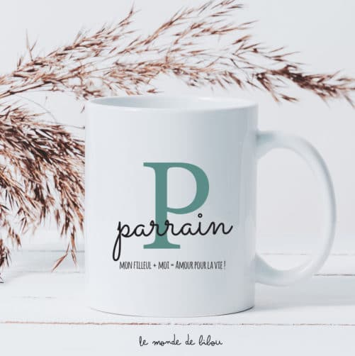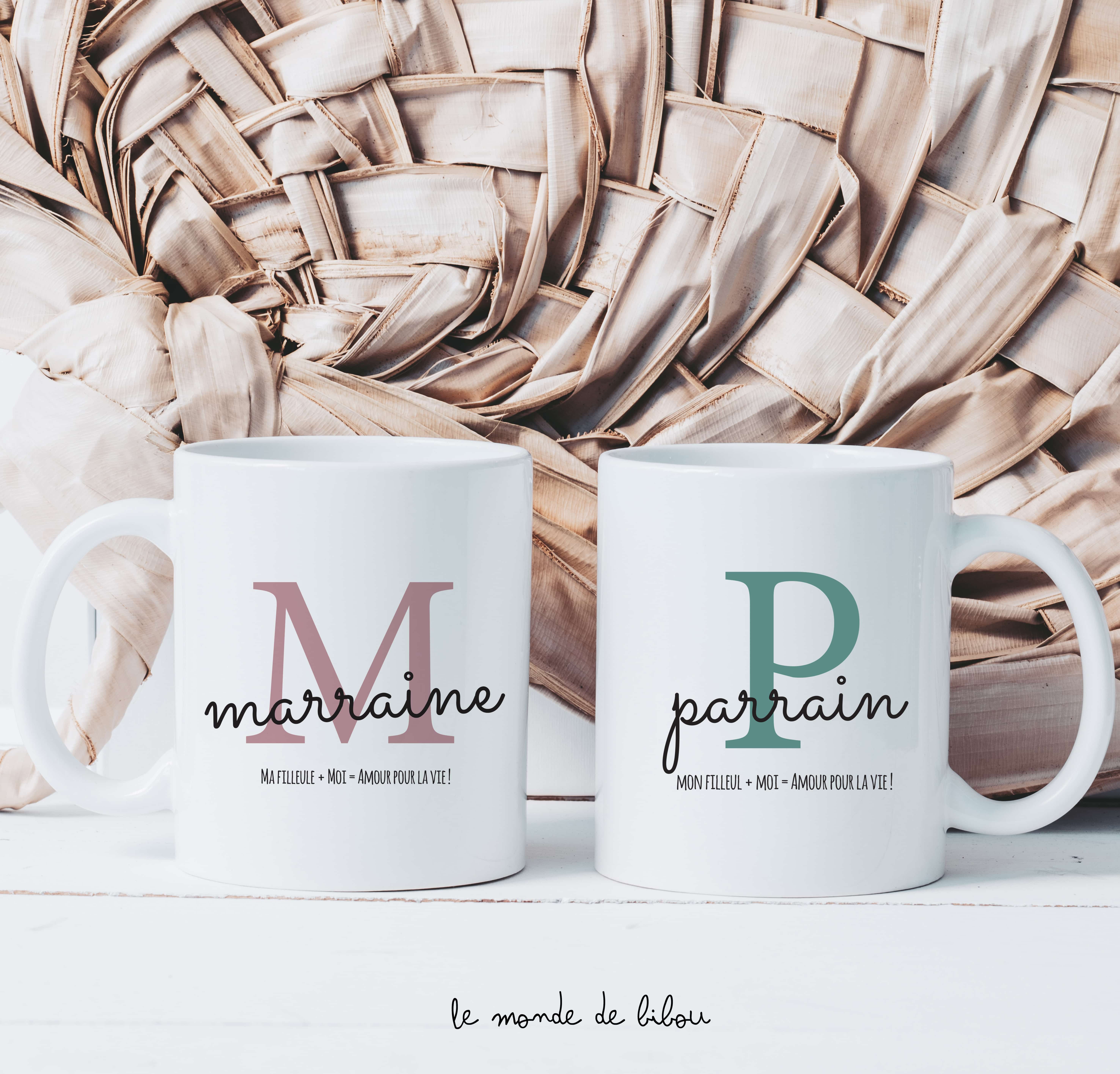 Les tasses personnalisées Parrain et Marraine existent en version solo, retrouvez les dans la boutique. Ce mug est une création le Monde de Bibou®. Toute reproduction est donc formellement interdite.