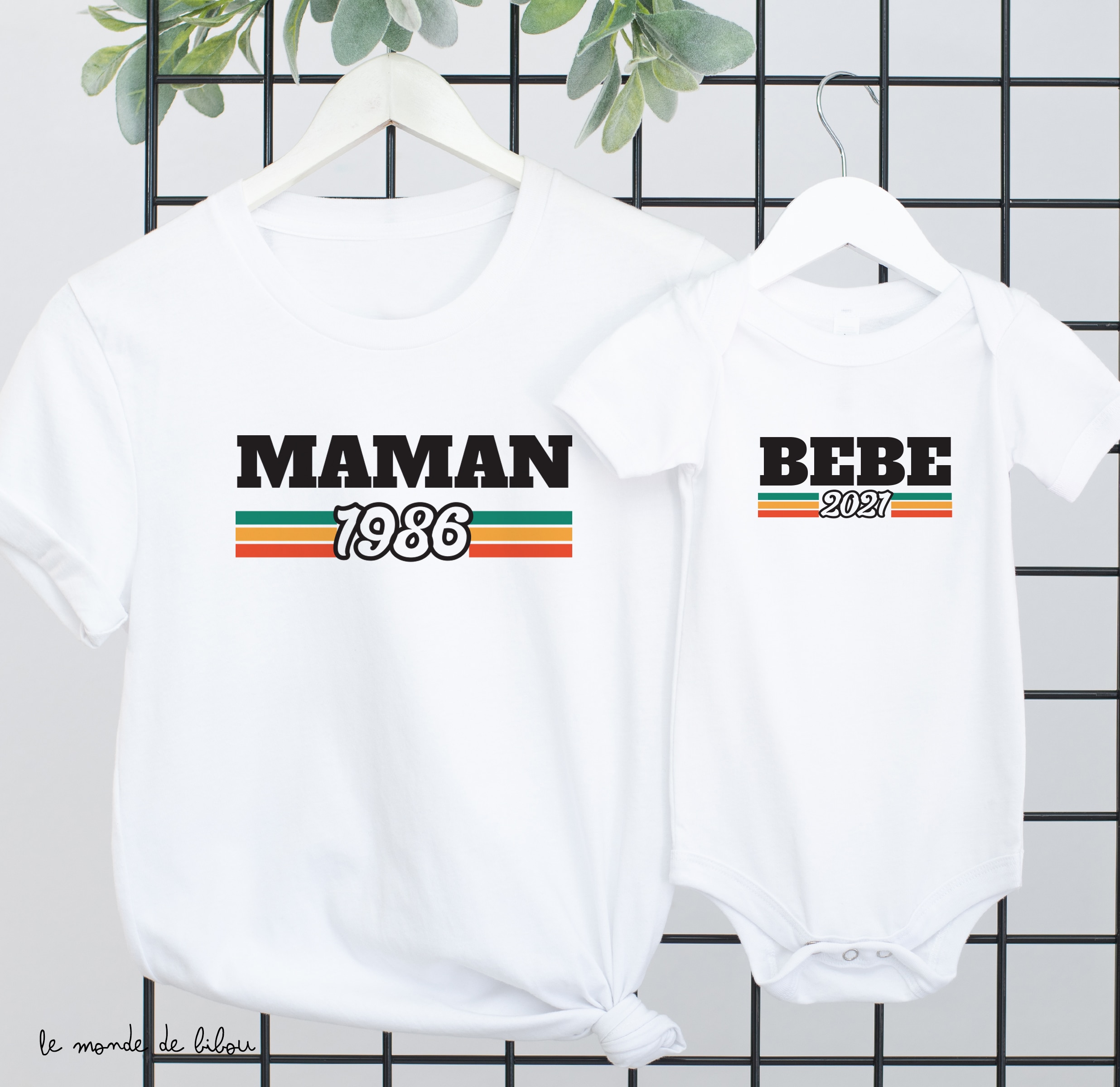 On adore ce Duo T-shirts années naissance look années 80, le duo est composé d’un t-shirt adulte et d’un t-shirt bébé ou d’un t-shirt enfant ou d’un body ! Un duo au style vintage totalement assumé ! Coordonnez vous en famille et renforcez votre complicité avec cette jolie collection Matchy Matchy !