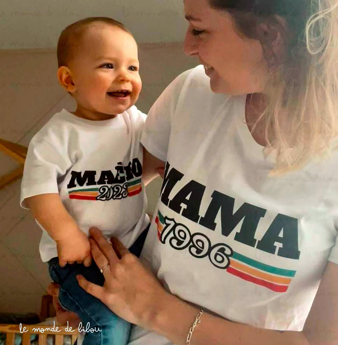 On adore ce Duo T-shirts années naissance composé d’un t-shirt adulte et d’un t-shirt bébé ou d’un t-shirt enfant ou d’un body ! Un duo au style vintage totalement assumé ! Coordonnez vous en famille et renforcez votre complicité avec cette jolie collection Matchy Matchy !