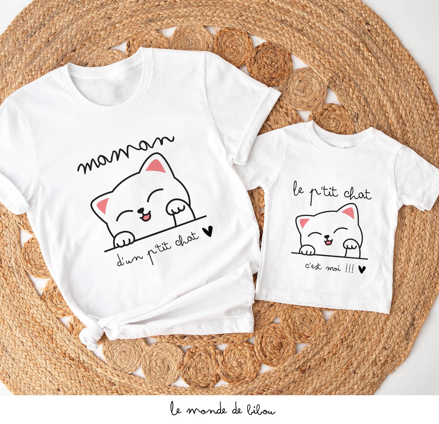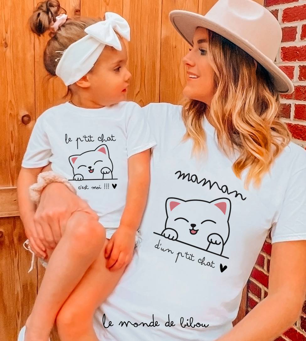 On adore ce Duo T-shirts Maman enfant p’tit chat composé d’un t-shirt adulte femme et d’un t-shirt bébé ou d’un t-shirt enfant ou d’un body ! Soyez coordonnés, Une jolie collection Matchy Matchy ! *** Nouveau existe en version papa ***