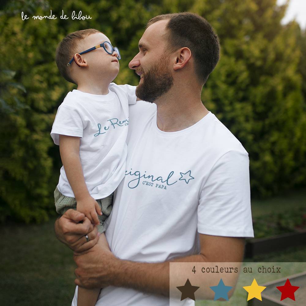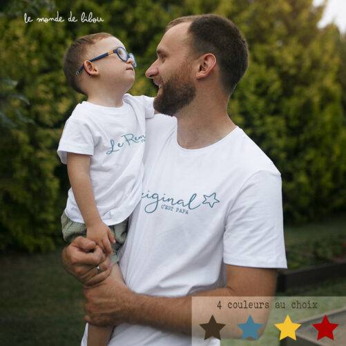 Texte t-shirt adulte : « L’Original » + (par exemple : c’est papa, prénom, papounet d’amour, etc…)