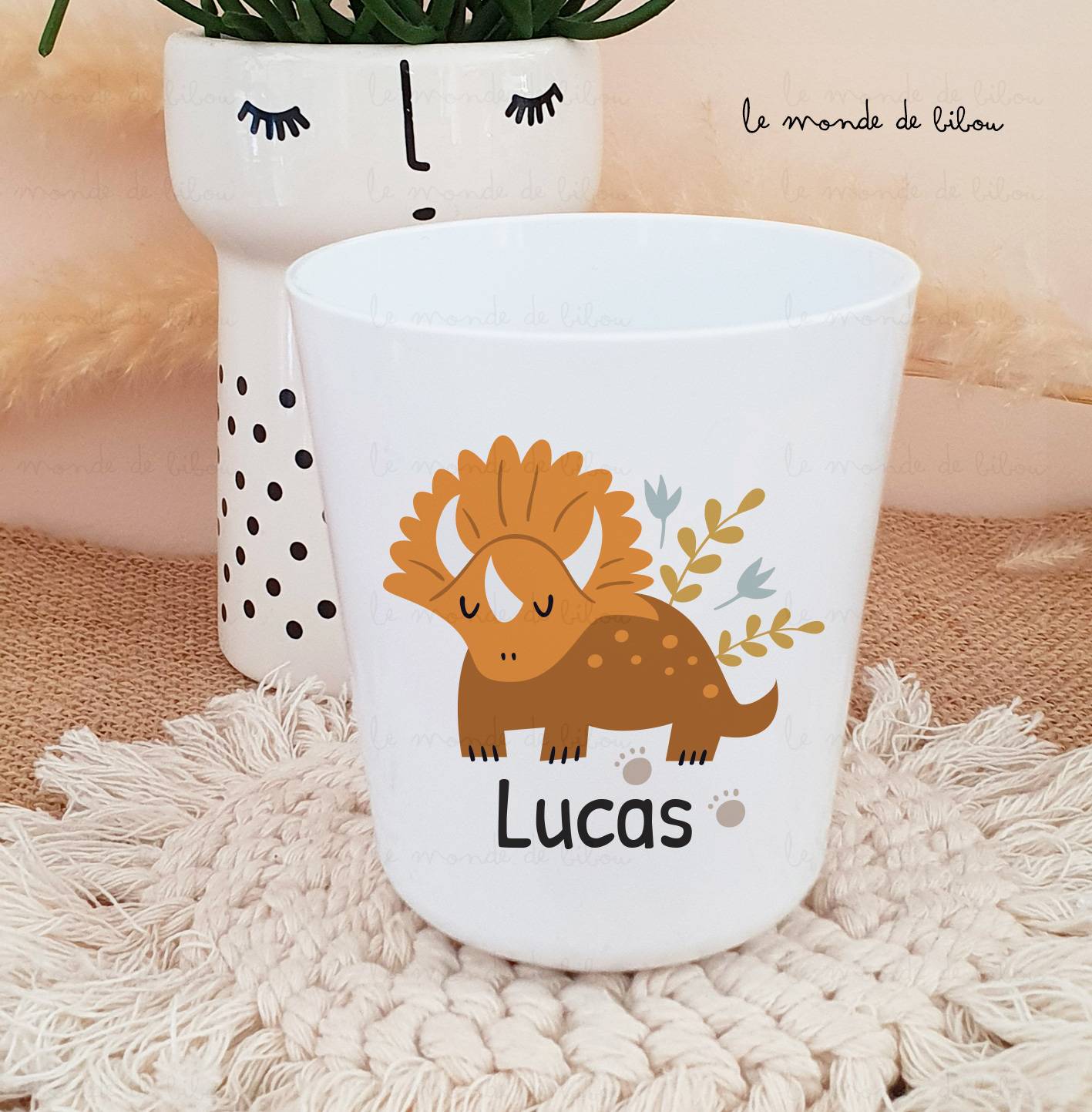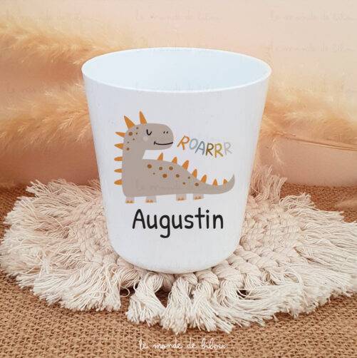 Découvrez notre super Gobelet enfant Dinosaure personnalisé qui plaira à coup sûr à votre enfant ! Que ce soit pour la maison, pour la crèche, la maternelle ou encore chez nounou. Il accompagnera votre enfant partout ! Les gobelets sont extrêmement résistantes aux chocs ou aux chutes, ils ont aussi une très grande durée de vie. Très légers, c’est l’idéal pour les enfants. Nos gobelets sont garantis sans Bisphénol A.