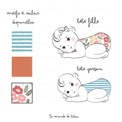 - Disponible en bébé garçon ou bébé fille et en 3 coloris différents