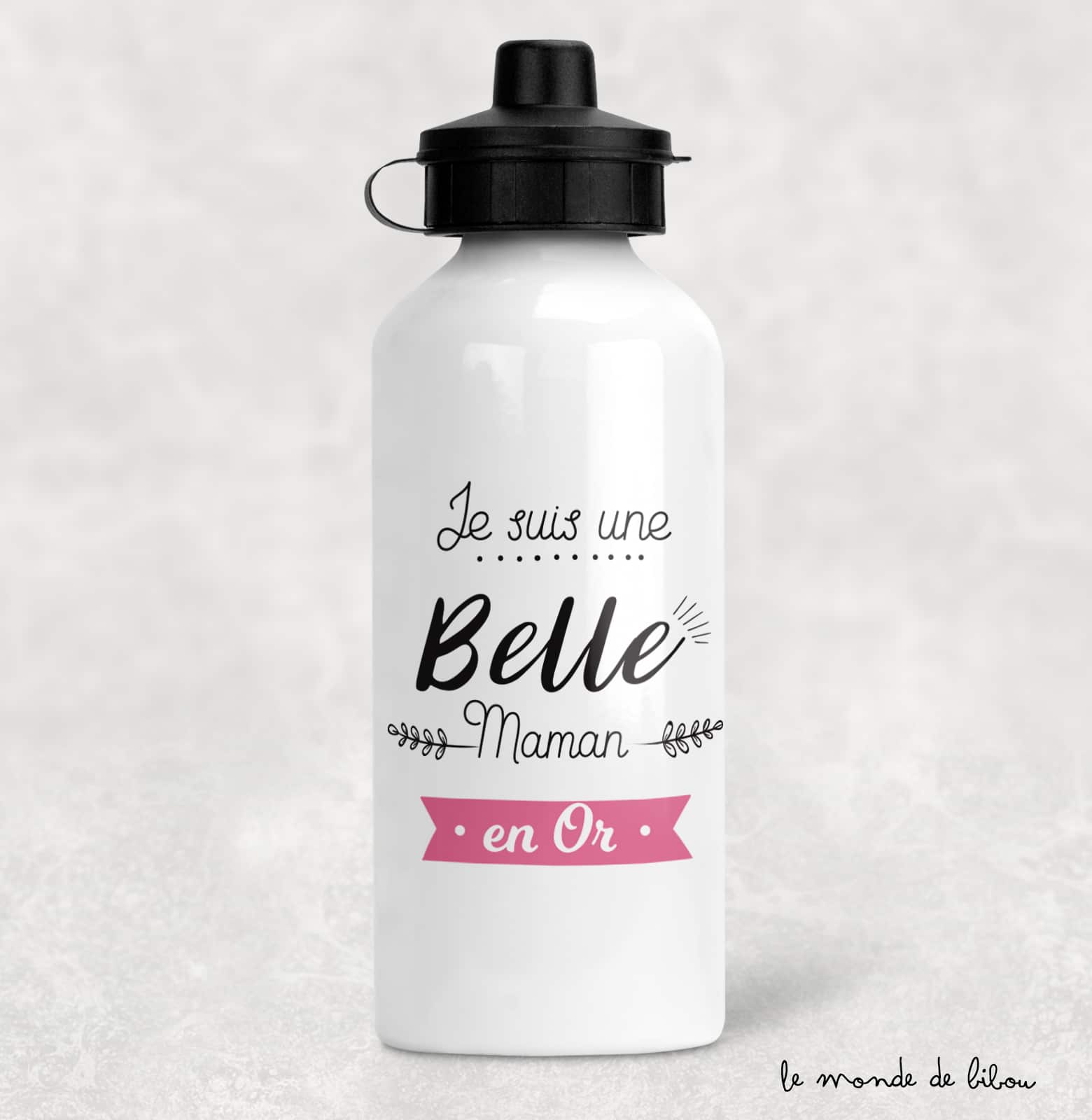 Fini les bouteilles en plastique jetables, vraiment pas écologique, on pense gourde maintenant. Notre Gourde Belle maman en or est une chouette idée de cadeau pour une belle maman qu’on aime !