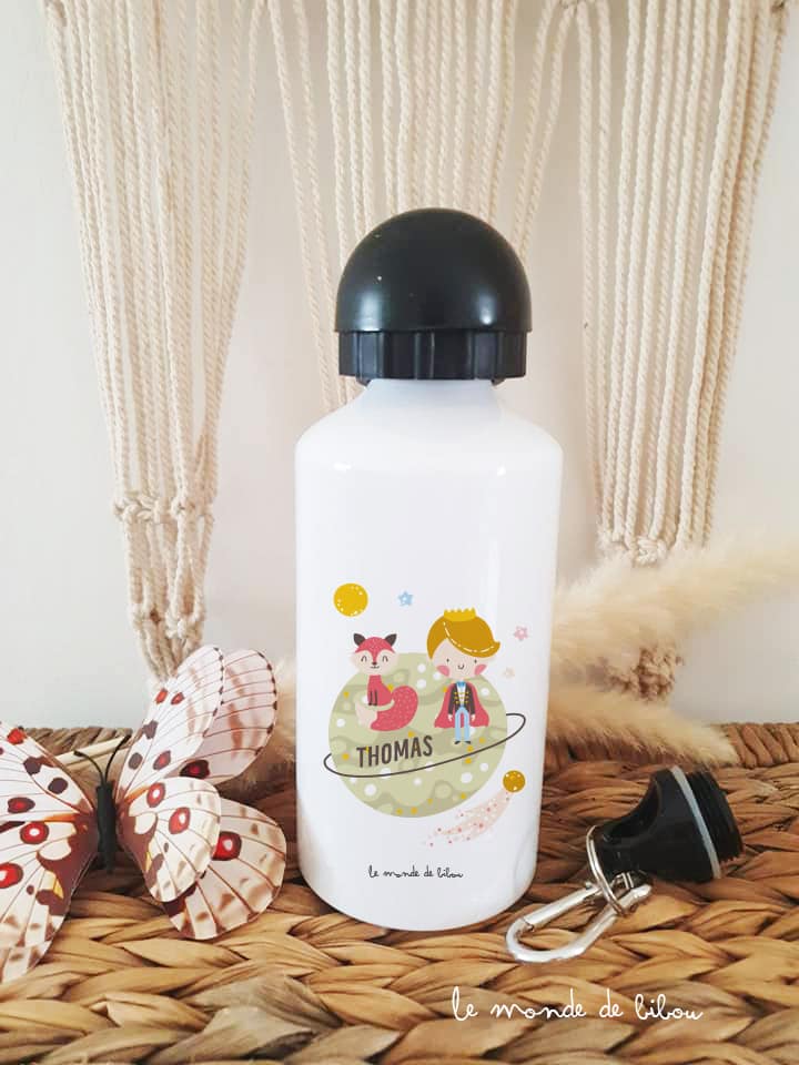 Fini les bouteilles en plastique jetable, vraiment pas écologique, on pense gourde maintenant. Notre Gourde enfant Petit prince est une chouette idée de cadeau pour vos enfants (conseillé pour des enfants de plus de 3 ans). Une jolie idée de cadeau à offrir à votre ou vos enfants, mais aussi une belle idée pour que les grands-parents puissent gâter leurs petits-enfants ou même que les parrains et les marraines chouchoutent leurs filleuls…