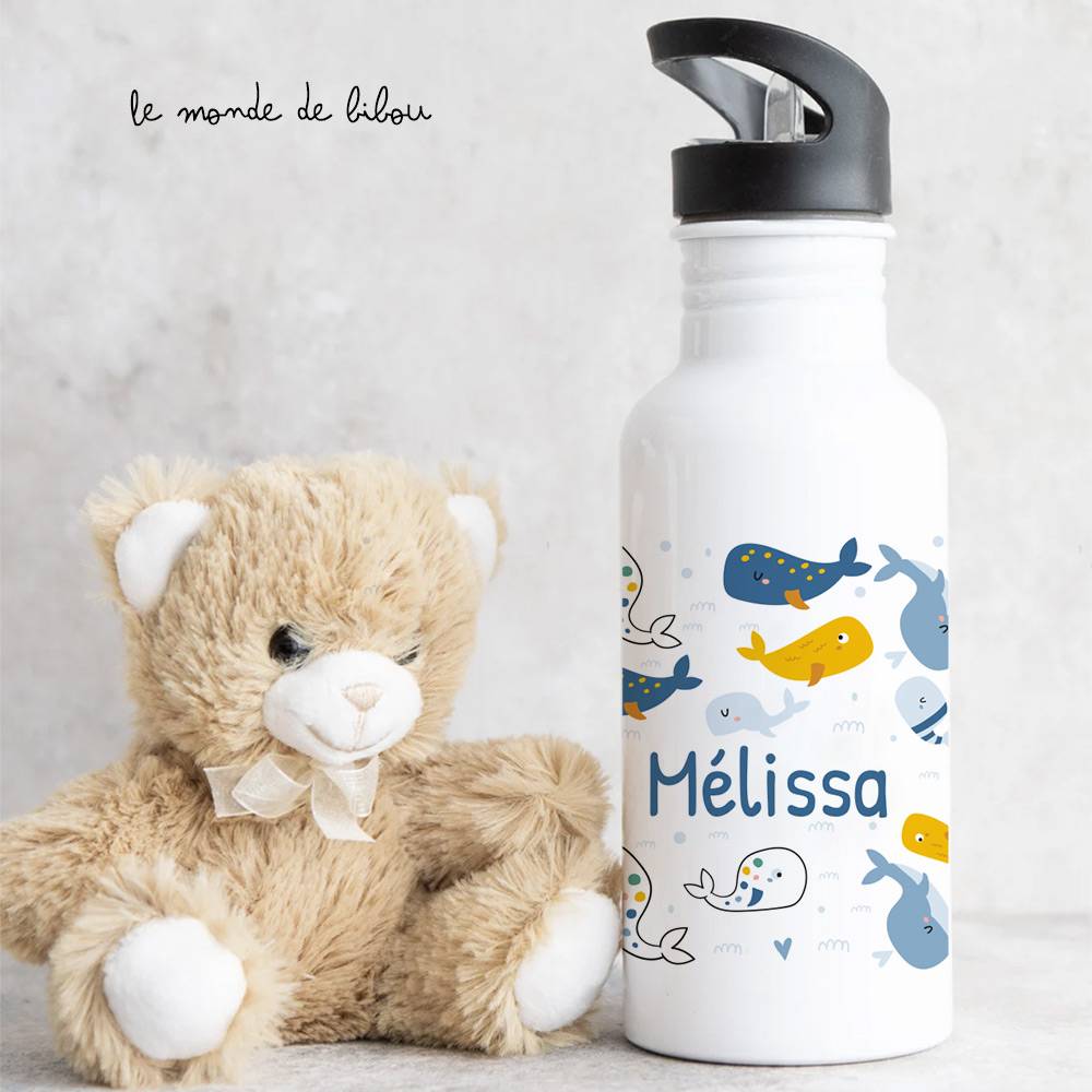 Fini les bouteilles en plastique jetable, vraiment pas écologique, on pense gourde maintenant. Notre Gourde paille Baleines personnalisée est une chouette idée de cadeau pour vos enfants (conseillé pour des enfants de plus de 3 ans). Une jolie idée de cadeau à offrir à votre ou vos enfants, mais aussi une belle idée pour que les grands-parents puissent gâter leurs petits-enfants ou même que les parrains et les marraines chouchoutent leurs filleuls…