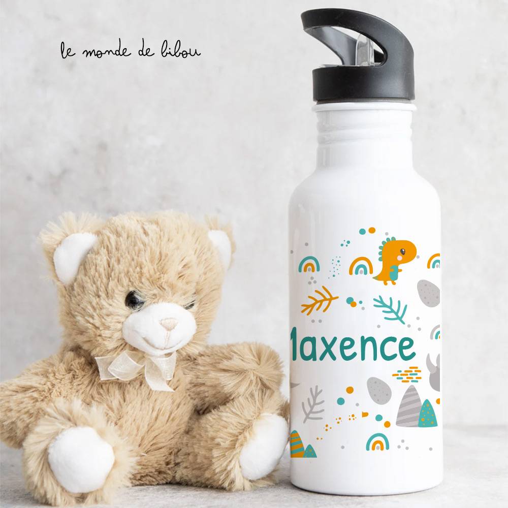Fini les bouteilles en plastique jetable, vraiment pas écologique, on pense gourde maintenant. Notre Gourde paille Dinosaures personnalisée est une chouette idée de cadeau pour vos enfants (conseillé pour des enfants de plus de 3 ans). Une jolie idée de cadeau à offrir à votre ou vos enfants, mais aussi une belle idée pour que les grands-parents puissent gâter leurs petits-enfants ou même que les parrains et les marraines chouchoutent leurs filleuls…