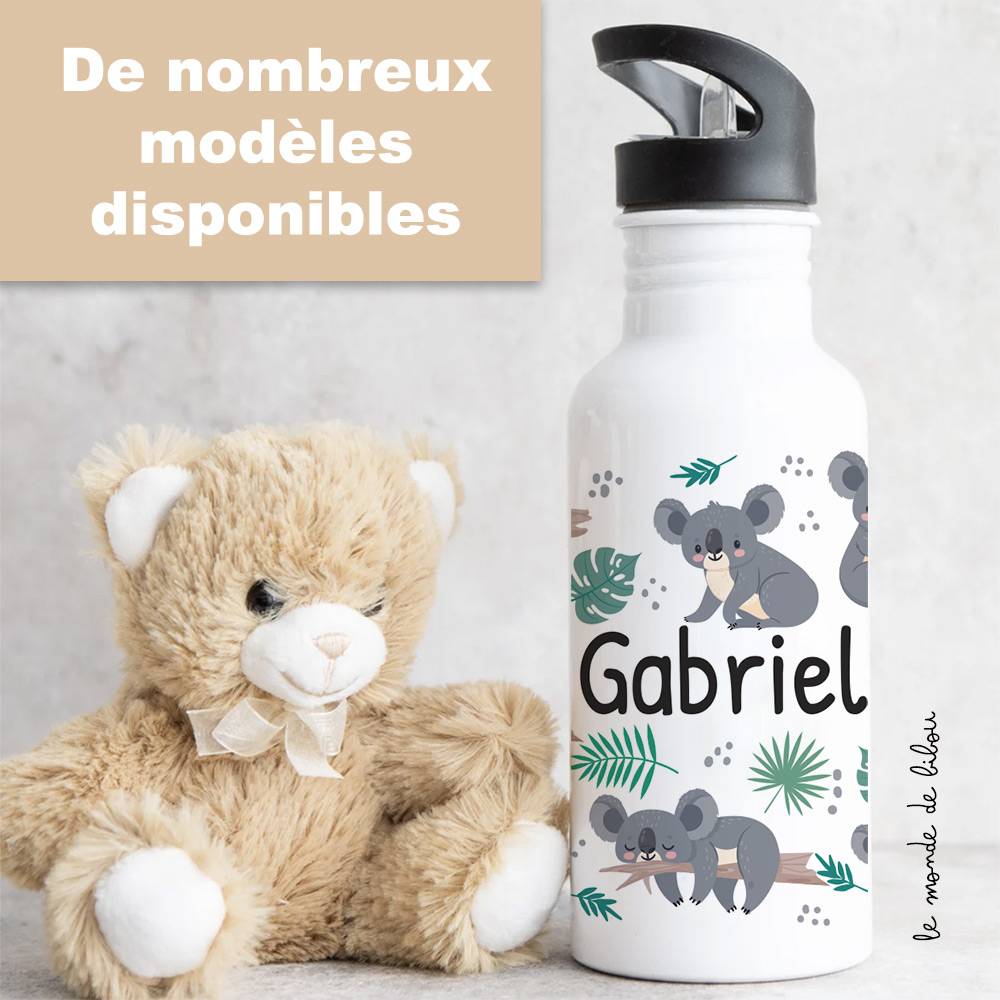 Fini les bouteilles en plastique jetable, vraiment pas écologique, on pense gourde maintenant. Notre Gourde paille Koalas personnalisée est une chouette idée de cadeau pour vos enfants (conseillé pour des enfants de plus de 3 ans). Une jolie idée de cadeau à offrir à votre ou vos enfants, mais aussi une belle idée pour que les grands-parents puissent gâter leurs petits-enfants ou même que les parrains et les marraines chouchoutent leurs filleuls…