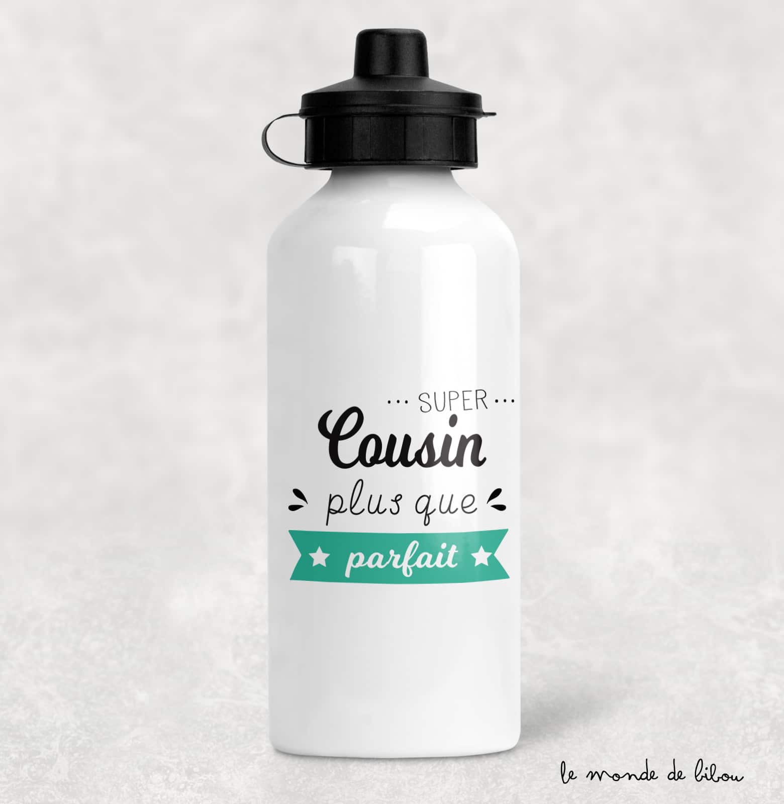 Fini les bouteilles en plastique jetables, vraiment pas écologique, on pense gourde maintenant. Notre Gourde Parfait super cousin est une chouette idée de cadeau pour un cousin plus que parfait.