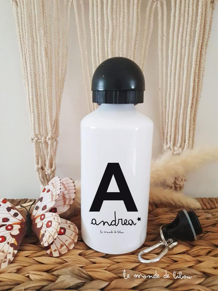 Fini les bouteilles en plastique jetables, vraiment pas écologique, on pense gourde maintenant. Notre Gourde personnalisée Initiale est une chouette idée de cadeau pour tous, petits et grands (conseillé pour des enfants de plus de 3 ans).