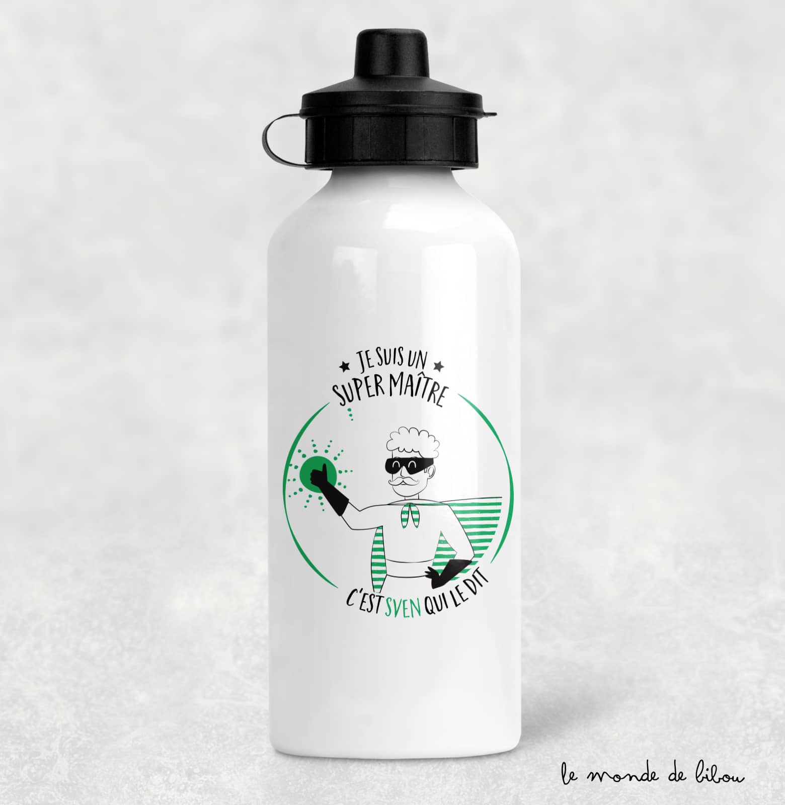 Fini les bouteilles en plastique jetables, vraiment pas écologique, on pense gourde maintenant. Notre Gourde personnalisée Maître Super héros est une chouette idée de cadeau pour remercier l’enseignant de votre enfant.