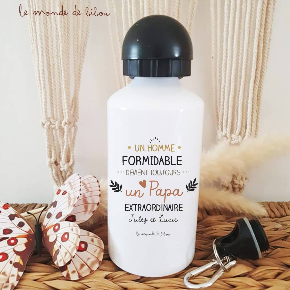 Fini les bouteilles en plastique jetables, vraiment pas écologique, on pense gourde maintenant. Notre Gourde personnalisée Papa extraordinaire est une chouette idée de cadeau pour un papa au top !