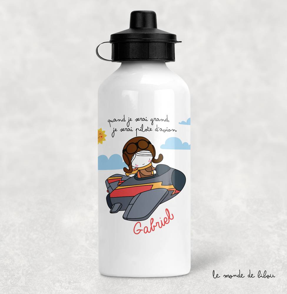 Fini les bouteilles en plastique jetable, vraiment pas écologique, on pense gourde maintenant. Notre Gourde Pilote d’avion est une chouette idée de cadeau pour vos enfants (conseillé pour des enfants de plus de 3 ans). Une jolie idée de cadeau à offrir à votre ou vos enfants, mais aussi une belle idée pour que les grands-parents puissent gâter leurs petits-enfants ou même que les parrains et les marraines chouchoutent leurs filleuls…