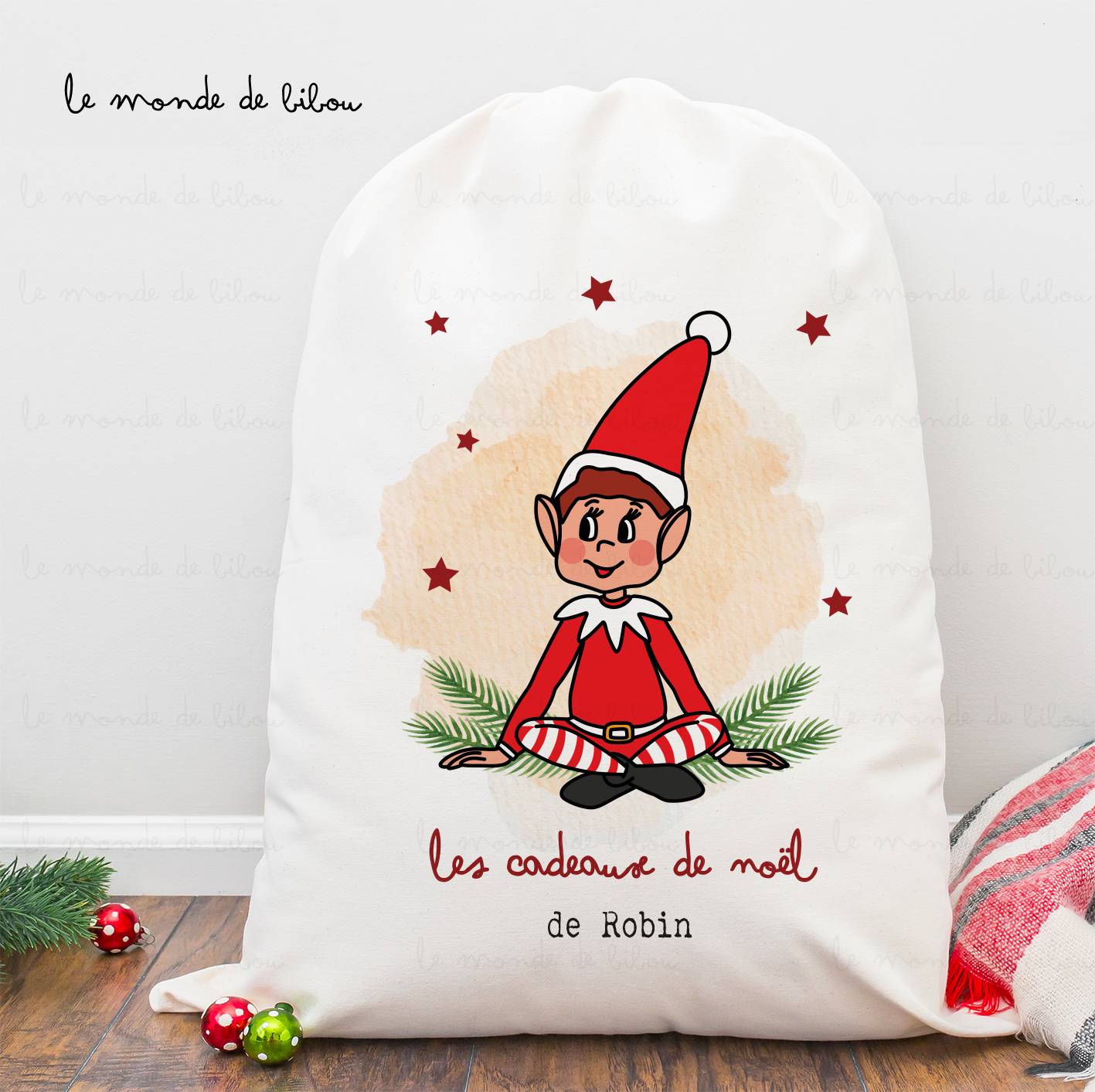 Apportez encore un peu plus de magie de Noël grâce à cette jolie Hotte Lutins de Noël taille L personnalisée au prénom de votre choix. A coup sûr vous ferez des heureux grâce à la personnalisation, qu’ils soient petits ou grands !