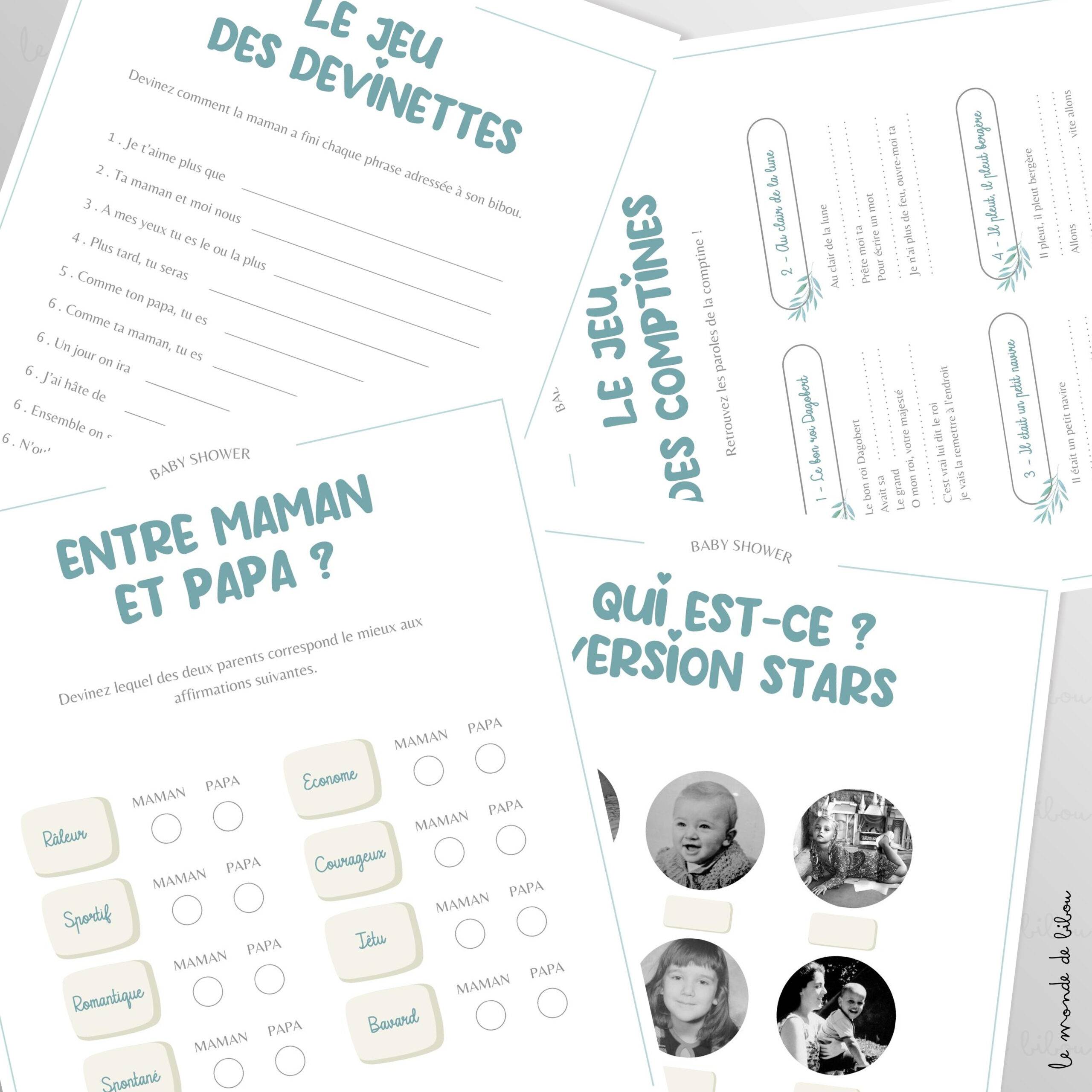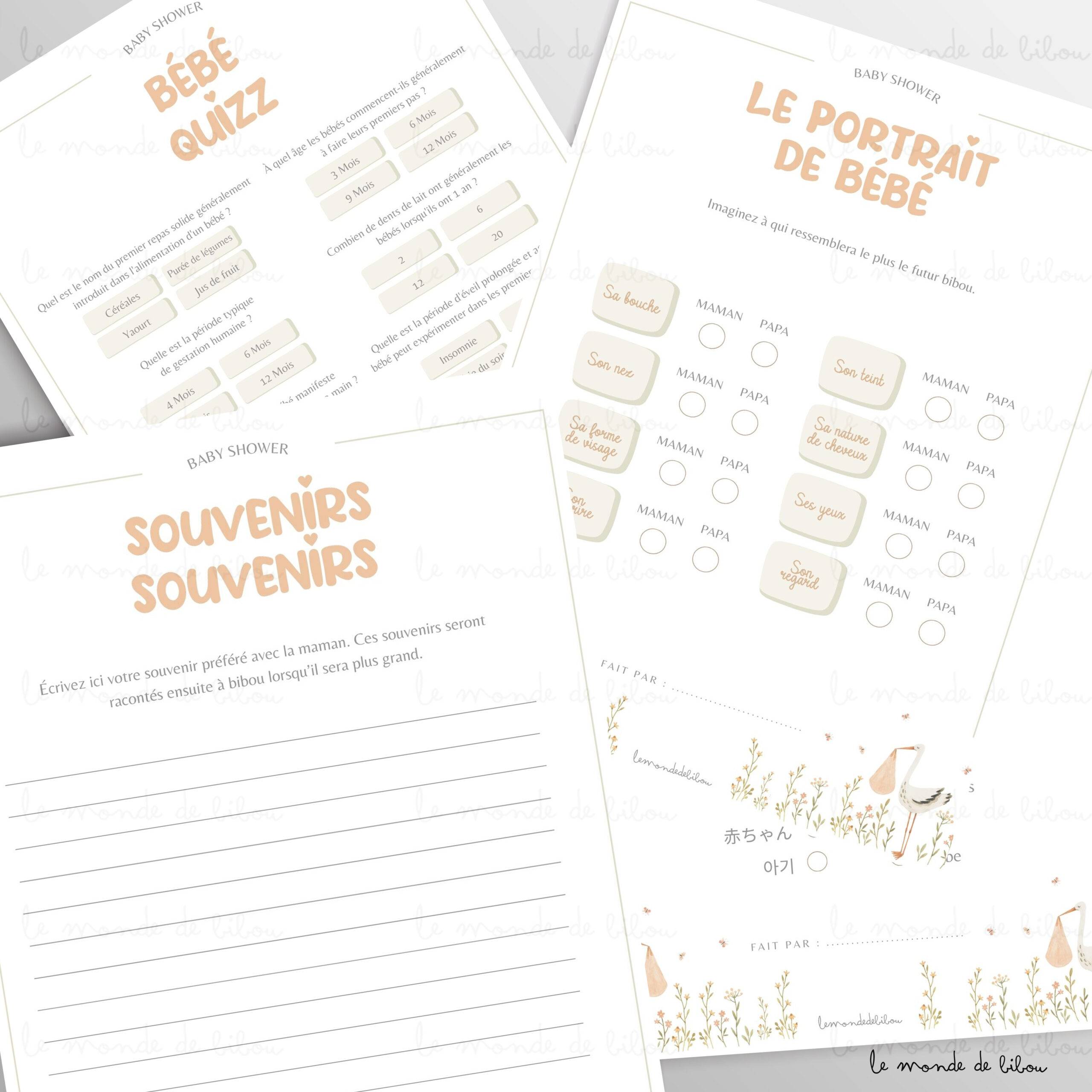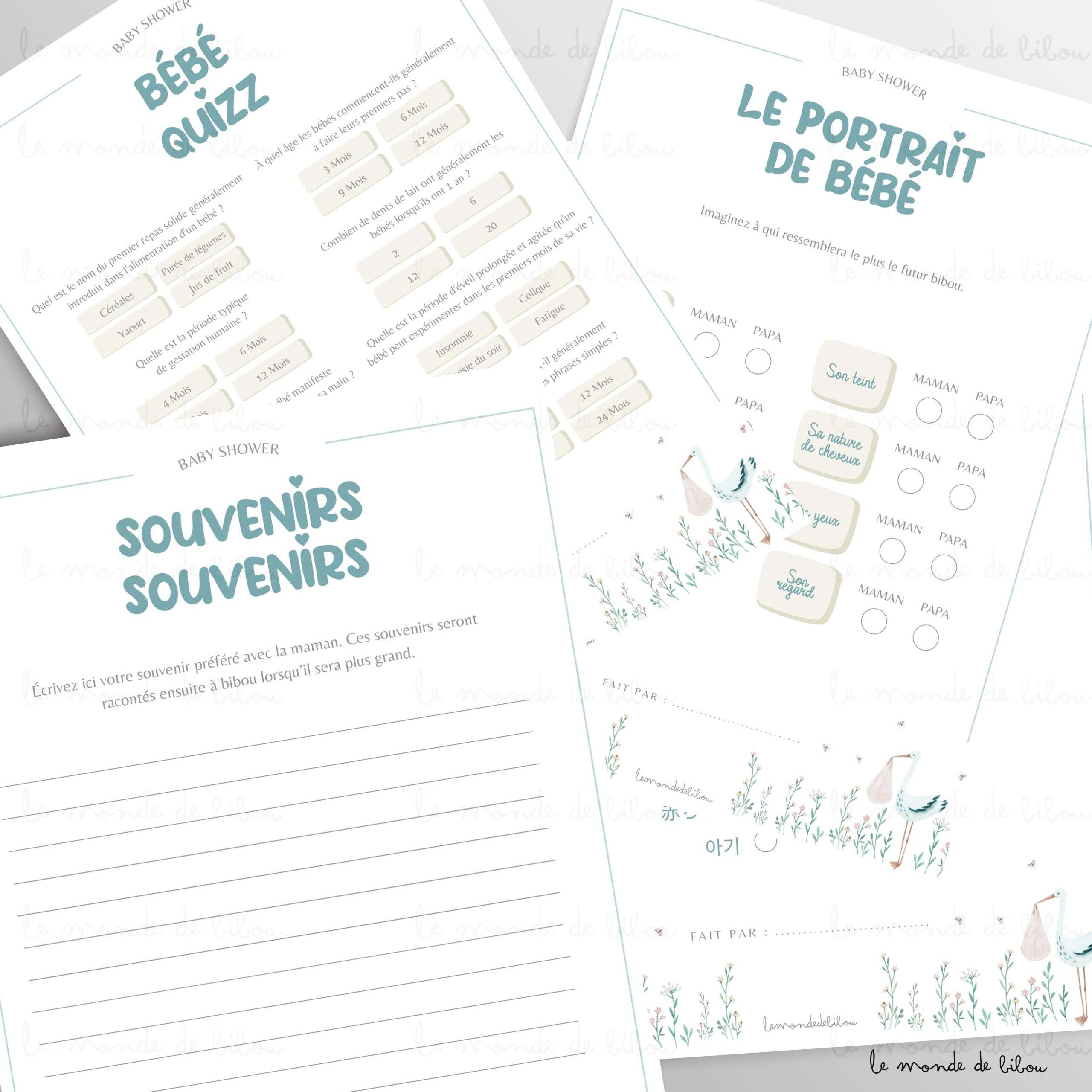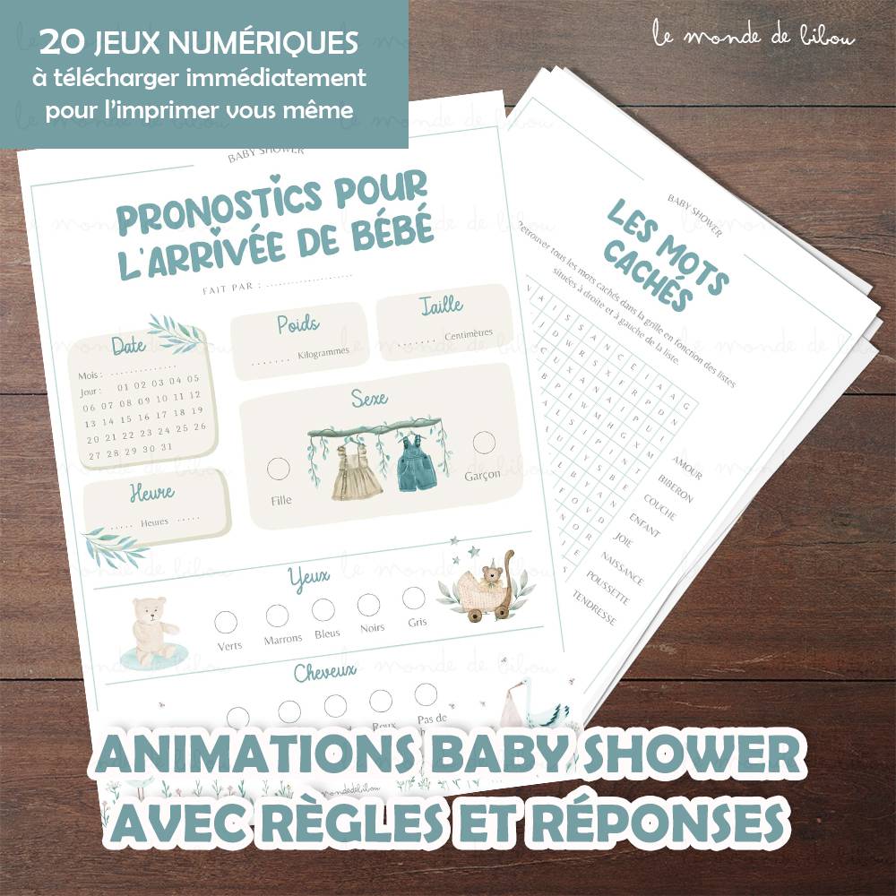 Nos Jeux Baby shower numériques à télécharger vous plaisent ? Retrouvez nos autres cadeaux personnalisés de grossesse et pour Baby shower ici. Création le Monde de Bibou®. Toute reproduction est donc formellement interdite.