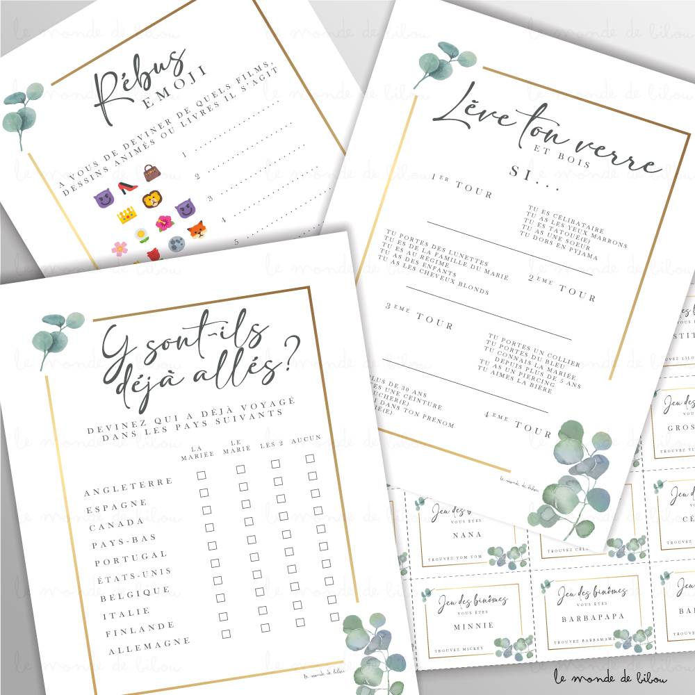 2 Fichiers A4 de 8 pages chacun comportant les règles, les pancartes et les étiquettes éventuelles. C’est le nécessaire pour une soirée de mariage réussie.
