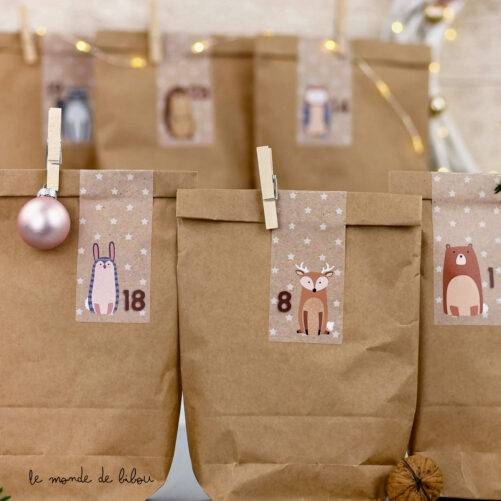 - Kit calendrier de l’Avent : Motif animaux de la forêt