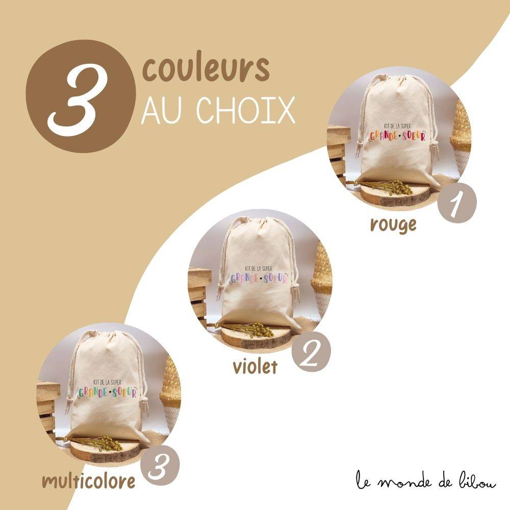 Notre petit sac pochon pour Kit de la super grande sœur sera idéal pour réaliser votre propre Kit de la super grande sœur pour la maternité ou pour toutes autres occasions. On oublie rarement la valise avec le nécessaire et les affaires de bébé qui arrive, mais on ne pense que trop rarement aux petites choses qui peuvent malgré tout changer la vie des personnes qui attendent à la maternité ! Découvrez donc notre Kit de survie « Super Grande Soeur » spécial maternité, ce sac est le compagnon idéal pour impliquer et divertir votre aîné pendant cette période de transition excitante et l’aider à patienter ! De plus, vous trouverez 3 déclinaisons de couleurs.