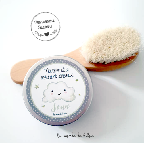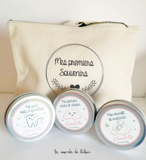 Notre kit mes premiers souvenirs de bébé est personnalisé. Il permet de conserver le bracelet de naissance, la première mèche de cheveux, les dents de lait et d’autres souvenirs précieux de bébé. C’est d’une belle idée de cadeau de naissance pour se faire plaisir ou à offrir pour une naissance, votre présent plaira à coup sûr !