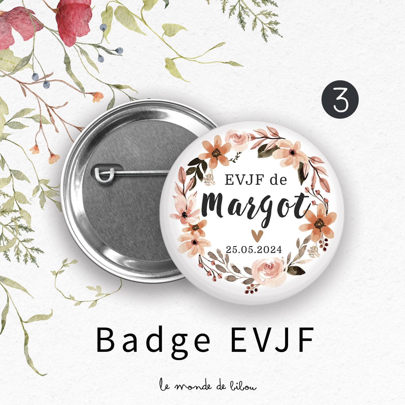 Notre Lot de 5 Badges personnalisés EVJF vous plaît ? Retrouvez sur la boutique un large choix de produits EVJF qui vous permettra d’assortir toute votre décoration et vos cadeaux et ainsi faire de cette journée un moment inoubliable ! Retrouvez le t-shirt personnalisé EVJF sur le même thème couronne de fleurs.