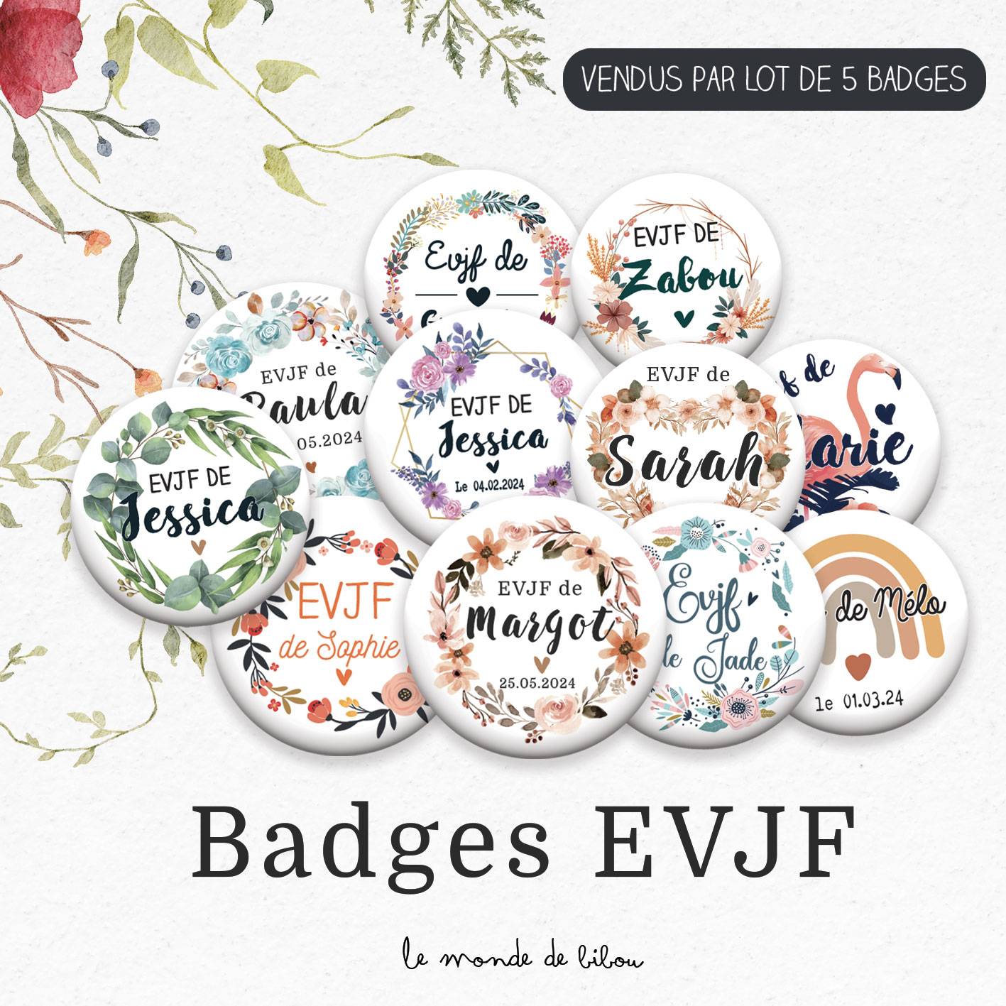 Notre Lot 5 Badges personnalisés EVJF est le petit cadeau souvenir à offrir lors d’un EVJF à la team et à la future mariée. Nos illustrations sont toutes disponibles en version T-shirt pour un effet Matchy Matchy.