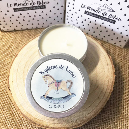 Le Lot de 10 bougies Cheval à bascule, voilà une belle idée cadeau pour vos invités qui change des traditionnelles dragées. La bougie est joliment décoré dans un style épuré, grâce à sa jolie colombe dessinée sur un fond bleu. Nos jolies bougies personnalisées seront le cadeau invité idéal.