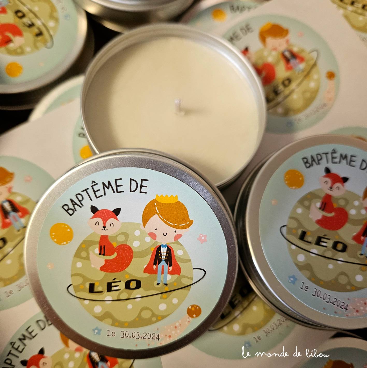 Notre Lot de 10 bougies Petit prince est composé de bougies parfumées personnalisées, elles seront le cadeau idéal pour vos convives. Un cadeau invité qui change des traditionnelles dragées.