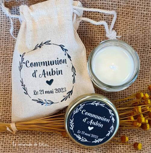 Notre sac pochon personnalisé sert de joli sac cadeau dans lequel vous glisserez la bougie parfumée