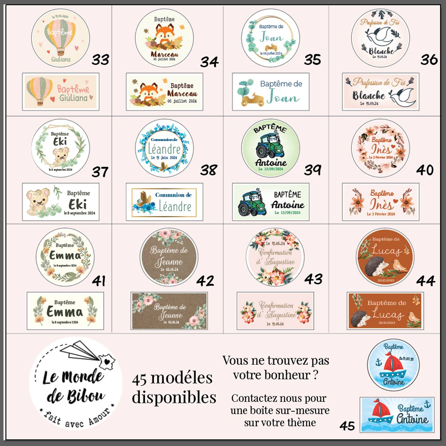 Nous vous proposons nos Mini bougies personnalisées Baptême comme cadeaux invités à offrir à vos convives lors de votre événements. Elles seront aussi une belle idée de décoration raffinée pour vos tables lors de cette célébrations. Un large choix s’offrent à vous parmi nos 45 designs originaux et tendances. Vous n’avez pas trouvé votre bonheur parmi nos modèles ? n’hésitez pas à nous contacter pour la réalisation de vos bougies sur-mesure. Nos mini bougie personnalisée s’adaptent à tous vos événements heureux comme Une Communion, Profession de Foi, Baby Shower ou encore fête de Naissance.
