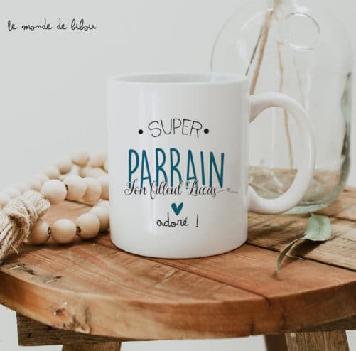Notre super tasse pour un super parrain est personnalisable au prénom de son ou sa filleul(le).
