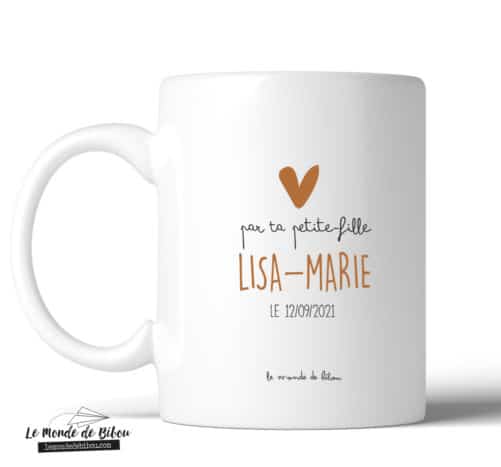 La Tasse est personnalisable à la date de votre choix et au prénom de son petit-enfant .