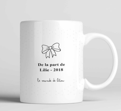 La Tasse est personnalisable au prénom de l’élève et à la date de l’année scolaire. C’est un joli mug aux couleurs intenses sur un discret fond à pois.