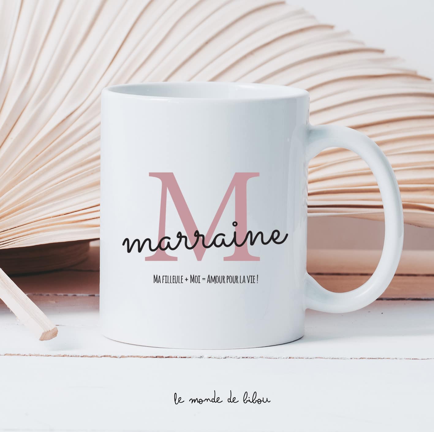 La tasse personnalisée Marraine existe en version DUO Mugs personnalisables pour un Super Parrain et une super Marraine. Ce mug est une création le Monde de Bibou®. Toute reproduction est donc formellement interdite.