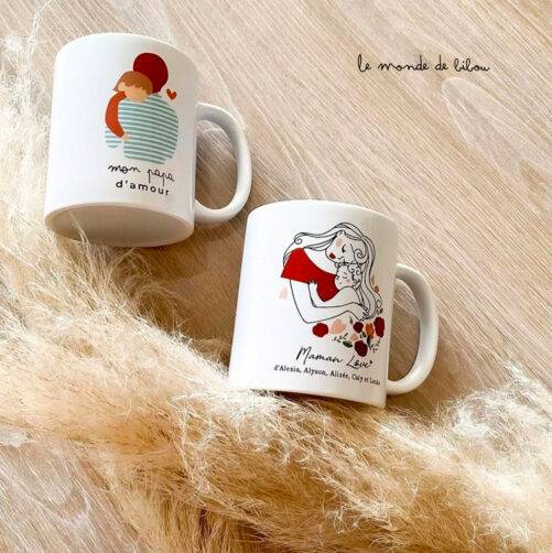 Vous manquez d’idée cadeau personnalisé à offrir à votre maman ? Le Mug personnalisé Maman love est une belle idée de cadeau pour dire à sa mère combien elle compte pour nous. Idéal pour célébrer la fête des mères, pour un anniversaire, une naissance ou comme cadeau de Noël… La Tasse est un joli cadeau personnalisable au(x) prénom(s) du ou des enfant(s).