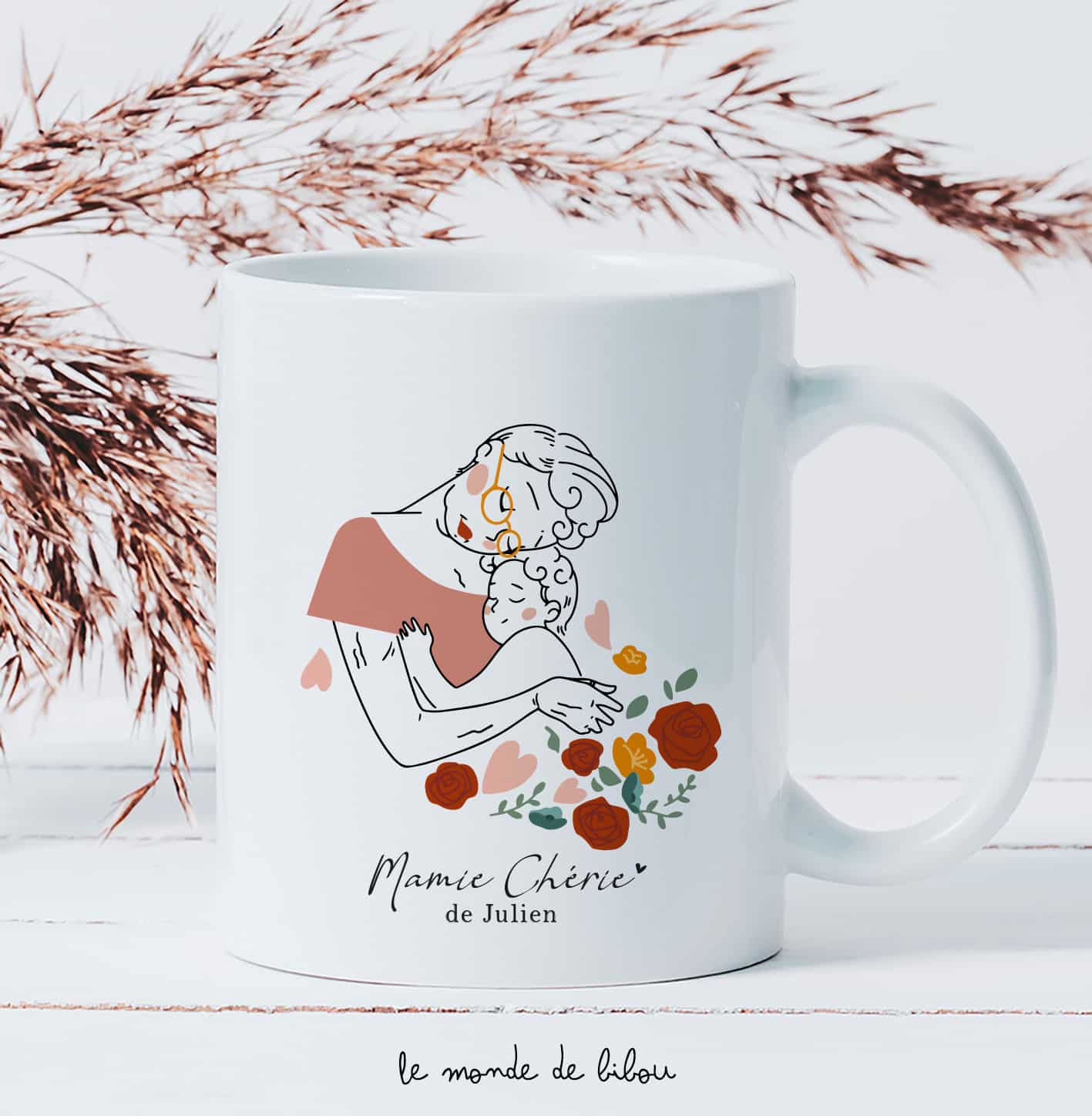 Avec cette tasse personnalisée pour une mamie qu’on aime vous êtes sûr de faire plaisir à celle qui recevra le mug. Le mug est personnalisable au(x) prénom(s) du ou des petits enfants
